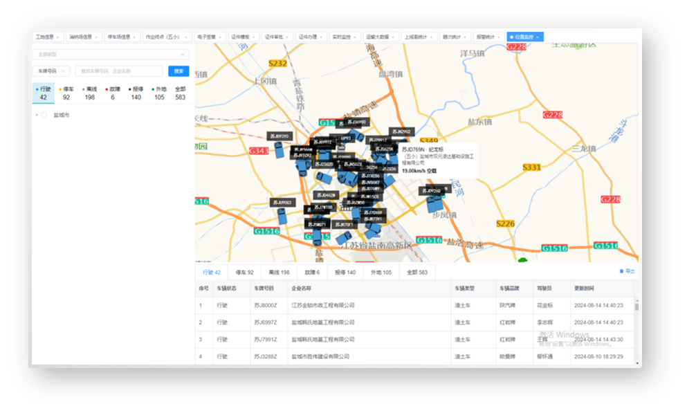 鹽城市城市運行管理服務平臺智慧渣土監管系統