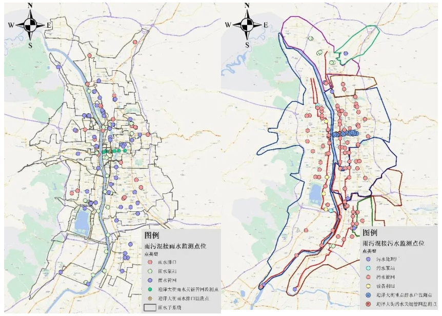 結(jié)合太原市現(xiàn)狀雨水系統(tǒng)分區(qū)、污水系統(tǒng)分區(qū)、受納水體、地形地勢(shì)現(xiàn)狀,對(duì)太原市47個(gè)雨水系統(tǒng)關(guān)鍵排口、區(qū)域泵站、核心管網(wǎng)匯聚點(diǎn)以及太原市8個(gè)污水系統(tǒng)的污水處理廠、污水泵站、核心管網(wǎng)匯聚點(diǎn)、典型排水戶進(jìn)行監(jiān)測(cè)。通過(guò)物聯(lián)監(jiān)測(cè)體系為管網(wǎng)隱患溯源、防澇聯(lián)合調(diào)度提供完善的數(shù)據(jù)支撐。