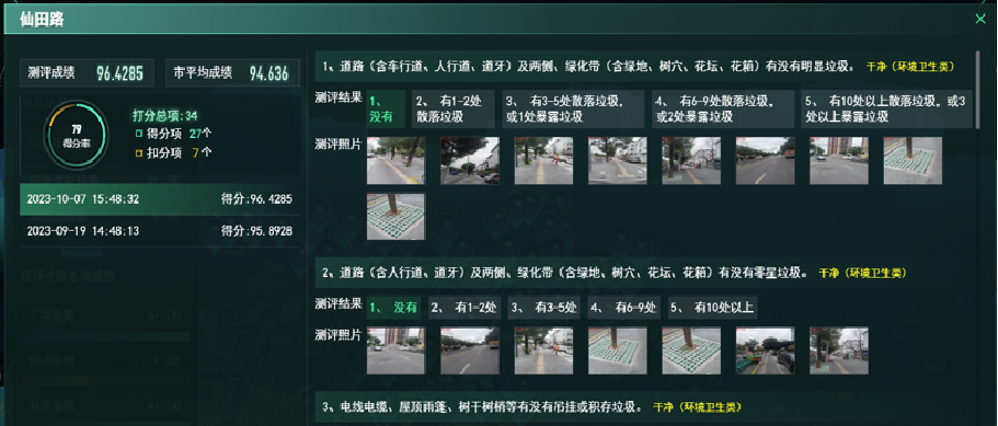 通過對 74 個街道開展現(xiàn)現(xiàn)場考察和問卷調(diào)查,每月生成各街道及行政區(qū)環(huán)境衛(wèi)生指數(shù)排名,同步形成測評與分析報告,精準(zhǔn)定位問題,推動各管理部門重視轄區(qū)環(huán)衛(wèi)管理工作。