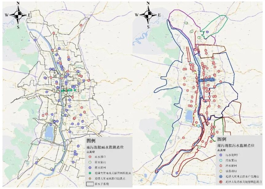 結(jié)合太原市現(xiàn)狀雨水系統(tǒng)分區(qū)、污水系統(tǒng)分區(qū)、受納水體、地形地勢(shì)現(xiàn)狀,對(duì)太原市47個(gè)雨水系統(tǒng)關(guān)鍵排口、區(qū)域泵站、核心管網(wǎng)匯聚點(diǎn)以及太原市8個(gè)污水系統(tǒng)的污水處理廠、污水泵站、核心管網(wǎng)匯聚點(diǎn)、典型排水戶進(jìn)行監(jiān)測(cè)。通過(guò)物聯(lián)監(jiān)測(cè)體系為管網(wǎng)隱患溯源、防澇聯(lián)合調(diào)度提供完善的數(shù)據(jù)支撐。