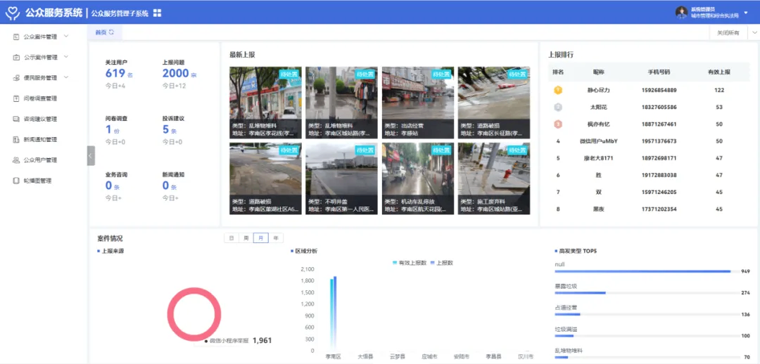 公眾服務(wù)方面暢通市民群眾舉報問題,參與城市管理,基于孝感隨手拍微信公眾號升級改造,市民可以隨時向平臺反饋投訴、反應(yīng)各類城市管理問題,并新建便民服務(wù)地圖模塊功能,可以通過便民服務(wù)地圖查找公園、公廁和停車場等功能。
